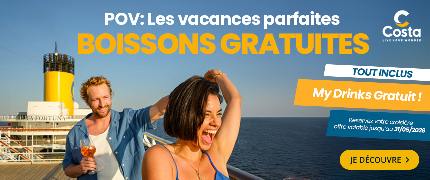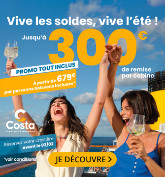 Pour votre prochaine croisière en Méditerranée, aux Caraibes, en Grèce ou en Europe du Nord, PromoCroisiere vous propose les offres de la compagnie Costa Croisière et ses bateaux d’une qualité exceptionnelle : le Costa Pacifica, le Costa Fascinosa… Vous profiterez des meilleures escales, avec des départs réguliers toute l'année. Découvrez l’ambiance des bateaux de croisières avec les nombreuses activités prévues à bord, les spectacles, l’équipe d’animation… Les amateurs d’art et de décoration originale seront ravis d’embarquer sur le Costa Deliziosa et le Costa Favolosa, avec leur univers unique.