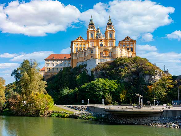 Après le petit déjeuner, temps libre ou participation à l'excursion optionnelle. EXCURSION OPTIONNELLE L'abbaye de Melk et dégustation de vin (demi-journée) Surplombant le Danube, l'abbaye de Melk constitue l'un des plus beaux exemples de l'architecture baroque de la Contre-réforme. Visite de l'abbaye puis découverte de ses jardins. Dégustation de vin dans les caves du restaurant. Appareillage à 13h00 et déjeuner à bord. Navigation à travers les paysages exceptionnels de la Wachau, région escarpée avant Vienne, où les méandres du Danube offrent un défilé de nature verdoyante. Dîner à bord. Récital de piano à bord par Martin Ivanov.